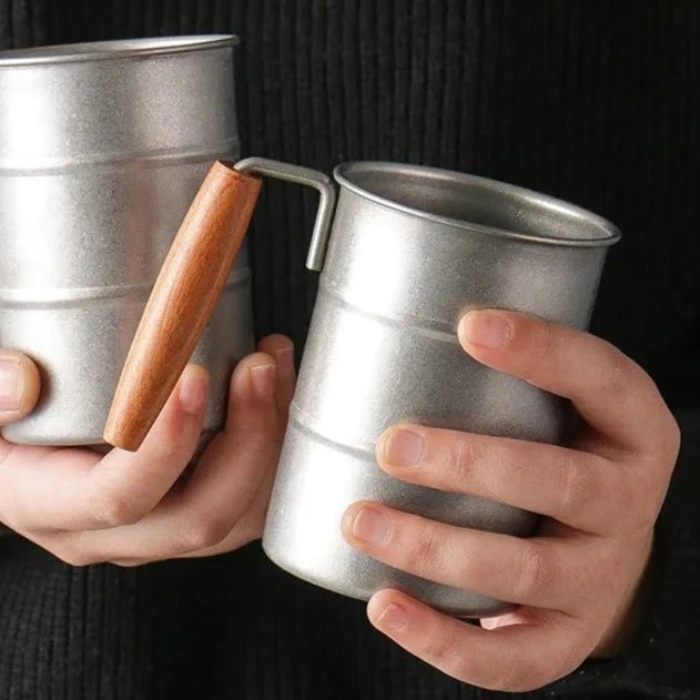 A timeless blend of historic aesthetics and modern functionality. Handcrafted from high-quality. insulated. 304 stainless steel and detailed hardwood handles. this coffee cup is more than just a vessel; it’s a statement piece that compliments your favorite beverages.
